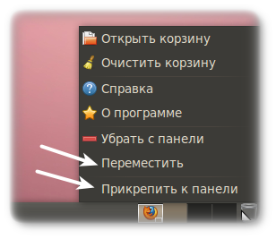 На картинке выше вы можете видеть что пункт меню "Переместить" недоступен. Причина простая - он заблокирован на панели.