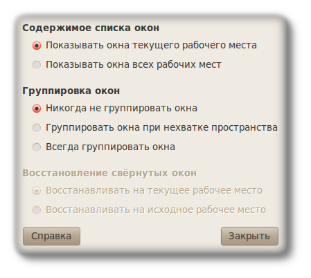 После того, как вы уберете галочку "Прикрепить к панели", апплет можно двигать. Но это еще не все. Если один апплет прикреплен к панели, то другой апплет не сможет стать на его место. Многие входят в ступор и не могут понять, в чем причина. Вроде бы апплет не прикреплен, а двигать его нельзя. Это значит, что его блокирует другой апплет, который прикреплен к панели. Параметры апплетовУ панелей есть настройки. Не у всех, но у большинства. Чтобы добраться до настроек апплета - попробуйте нажимать на нем и левой, и правой кнопкой мыши. Но до некоторых настроек интуитивно сложно добраться. Возьмем к примеру апплет, который показывает на нижней панели список запущенных приложений. ![]()