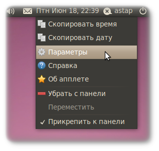 ![]() Сразу после того, как вы выполните команды выше, иконки могут быть меньше по размеру, чем на картинке. Это изменится при следующем входе в систему. А для всех тех, кто использует язык, отличный от русского и английского могу порекомендовать скачать этот архив. Ваша задача будет в том, чтобы найти нужный вам флаг, переименовать его (например, ru.svg) и скопировать этот файл в ~/.icons/flags. Также вы должны выполнить первую и последнюю команды из примера выше. Настройка погодыВызовите параметры апплета, который показывает время.