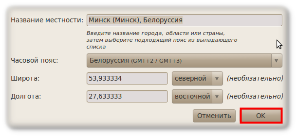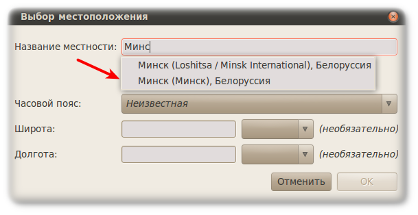 В появившемся окне необходимо сделать одну хитрость.. В поле "Название местности" начните набирать ваш город