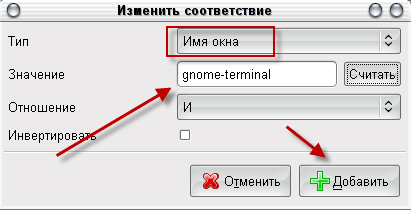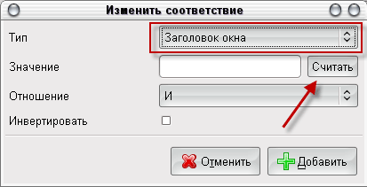 В появившемся окне меняем "Тип" с "Заголовок окна" на "Имя окна". Затем открываем терминал, делаем так чтобы он был всегда виден, нажимаем кнопку "Считать" и кликаем по терминалу.