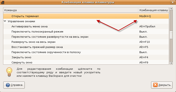 Я часто пользуюсь терминалом, поэтому назначил для его вызова клавишу Win+Q. Они находятся недалеко и пальцы к ним быстро привыкают. Еще раз напомню: чтобы вы могли использовать комбинацию клавиш Win + клавиша, вам нужно сперва провести настройку клавиатуры, как это было показано выше.