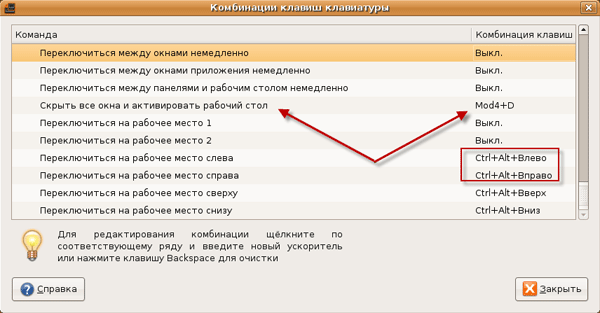 Как говорит подсказка, чтобы изменить комбинацию - нужно щелкнуть по соответствующему пункту и затем просто нажать на клавиатуре желаемую комбинацию клавиш или BackSpace чтобы удалить текущую комбинацию. Каждый человек привык к своей комбинации клавиш, поэтому настраивает каждый под себя сам. Я покажу пару примеров того, что настраиваю для себя я, быть может для вас это тоже покажется полезным. Еще я хотел бы добавить, что я удаляю все комбинации клавиш которые я не использую по одной причине: они могут конфликтовать с другими приложениями, которые я использую и в которых настроены точно такие же комбинации клавиш. Один из примеров этого - среда разработки IntelIJ IDEA для Java приложений. В этой среде используется комбинация клавиш Alt+F1, которая конфликтует с точно такой же комбинацией в Gnome. Если у вас будут похожие конфликты - отключите соответствующий пункт. Я сразу удаляю все чем я не пользуюсь, чтобы таких ситуаций вообще не возникало. Итак, о тех полезностях, которые у себя настраиваю я.