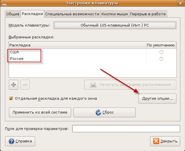 Вы увидите перед собой языки, которые используются в вашей системе. Если вам нужно добавить или удалить язык - делайте это здесь. Пока нас интересуют "Другие опции".