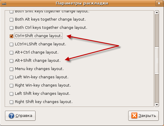 Вкладка "Layout switching" отвечает за то, какие клавиши будут переключать языки ввода. По-умолчанию это комбинация клавиш Alt+Shift, но меня она не устраивает и я меняю ее на Ctrl+Shift.