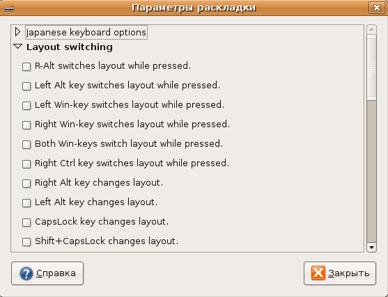 Перевод оставляет желать лучшего... Вы можете пробежаться по всем пунктам, я остановлюсь подробнее на двух: "Layout switching" и "Клавиши Alt/Win".