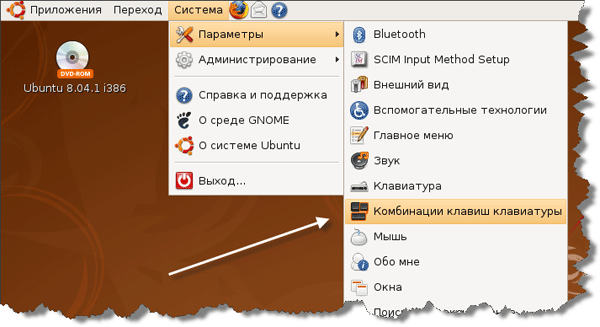 Ну и прежде чем закрыть окно настроек клавиатуры, обсудим еще пару моментов. "Отдельная раскладка для каждого окна" - что это означает? Допустим, вы открыли клиента обмена мгновенными сообщениями и пишите кому-то по-русски, а в другой программе вы программируете и пишите по-английски. Если галочка стоит, то при переключении между окнами - язык будет автоматически изменяться. Ну и раскладка по-умолчанию. Во избежание проблем при логине оставьте английскую раскладку! Настройка горячих клавишОткрываем пункт меню "Система - Параметры - Комбинации клавиш клавиатуры".