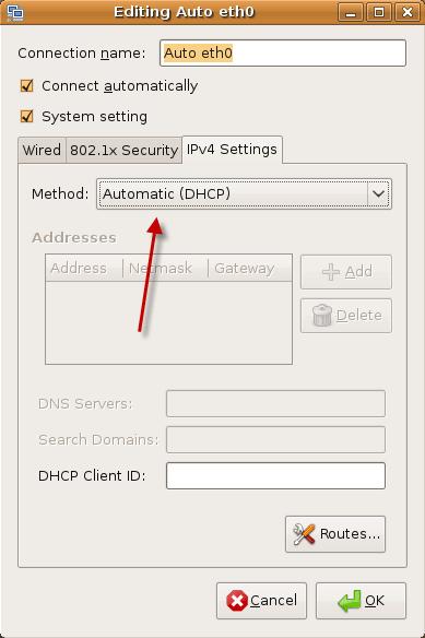 Когда wifi-соединение будет установлено, вид значка поменяется. Он будет показывать уровень сигнала. Все выглядит легко и просто, но это работает в том случае, если у вас DHCP-сервер, который сам раздает адреса или wifi-роутер. Но очень часто приходится настраивать сеть вручную, самому вводить тот ip адрес, который выдал вам провайдер. Gnome Network Manager - настройка вручнуюДопустим, вы вставили кабель в сетевую карту, но автоматическая настройка для вас не подходит - у вас есть ip адрес, маска подсети и другие данные, которые нужно ввести. Нажимаем правой кнопкой мыши на иконке соединения и выбираем пункт меню "Edit connections".