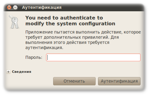 Вы увидите запрос пароля. Опять таки, не забываем, что мы вводим пароль своего пользователя.